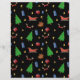 Papel de Navidad adorable con un patrón de árboles de Navidad, trineos, regalos y más. En un lado el fondo es blanco mientras que en el otro lado es negro. Ilustrado y diseñado por Patricia Alvarez.