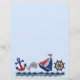 Ilustracion gráfico del patrón náutico del velero, la rueda de los barcos, el ancla y la ballena en el agua.