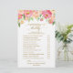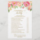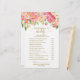 Este juego de flores de melocotón y peonía rosada, "baby word scramble", es perfecto para un chica elegante con ducha de bebé. En la parte delantera de la tarjeta de juego aparece "mamá o papá?", y en la parte trasera de la tarjeta se muestra "bola de palabras". El diseño floral presenta un hermoso arreglo de peonías acuáticas en tonos de rubor y coral a juego con una delgada caligrafía de Relieve metalizado de oro de imitación. Personalice la parte delantera de la tarjeta con el nombre de la futura madre y la fecha de la ducha de bebé. Puede personalizar las preguntas del juego haciendo clic en el botón "personalizar". CLAVE DE RESPUESTA DE BABY SCRAMBLE: 1.Diaper 2.Bassinet 3.Bottle 4.Crib 5.Pacifier 6.Changing Table 7.Stuffed Animal 8.Stroller 9.Rubber Duck 10.Blanket 11.Tether 12.Formula 13.High Chair 14.Mobile 15.Thermometer Nota: Este diseño no presenta oro real Relieve metalizado. Es un gráfico de alta calidad hecho para parecer un Relieve metalizado dorado.