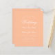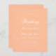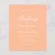 Una simple y minimalista invitación a una boda económica. Sólo tiene texto blanco sobre fondo melocotón (un color moderno). La palabra Boda y los nombres están escritos en un guión caligráfico elegante.