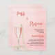 Una invitación moderna, elegante y glamurosa para una ducha de perlas y de novias Prosecco. Un fondo degradado rosa con manchas doradas, un vaso con burbujas rosas y perlas. El nombre está escrito con una escritura de estilo con letras a mano moderna. Personalice y agregue los detalles de su fiesta. 1 hoja = 1 borde impreso de invitación al borde.