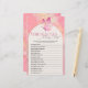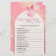 Prueba el conocimiento de tus invitados con nuestro Chica Baby in Bloom Baby Shower quien conoce a mamá mejor juego! Con un suave fondo rosa pastel y delicadas mariposas rosas que revolotean en el diseño. Este juego divertido y atractivo es una manera perfecta de ver quién conoce mejor a la futura mamita. Le aporta un toque personal y lúdico a su ducha de bebé, manteniendo el tema floral muy consistente. No olvide explorar los objetos que coincidan.