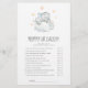 Este juego de "mamá o papá", niño elefante durmiente, es perfecto para una simple ducha de bebé. El moderno diseño cuenta con un moderno y bonito animal acuático de safari zoo durmiendo en una suave nube con estrellas amarillas brillantes. Puede personalizar las preguntas del juego haciendo clic en el botón "personalizar".