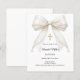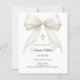 Celebre el Bautizo o la Presentación de su hijo con esta elegante invitación de lazo de marfil, diseñada con un lazo de satén atemporal adornado con perlas delicadas y una cruz dorada clásica.