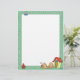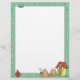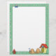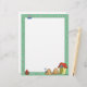 Este lindo personalizado de membrete tiene un borde verde con huesos de perro corriendo a lo largo de los cuatro lados, y un perro durmiendo frente a una casa de perros en el fondo.