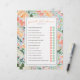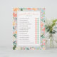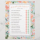 Esta plantilla de fiesta de despedida de soltera incluye el juego "adivina quién es la novia o el novio", con 14 preguntas editables de sí o no. Foto opcional en el reverso. Personalice todo el texto, incluso puede eliminar los círculos "B" y "G" para hacer una versión de completar espacios en blanco de cualquier juego. Una vez que esté en el editor, puede cambiar el título del juego y las preguntas, incluyendo el estilo de fuente, color, tamaño, color de fondo, incluso la escala de los elementos florales para que coincida con su evento.