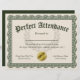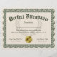 Certificado de asistencia perfecto, Personalizar y rellene su nombre, premio y otra información en línea. Hermosos rosettes de madera decorados con obras de arte de estilo antiguo borde. Personalización de la asistencia perfecta y sobresaliente tradicional para reconocer a los estudiantes en la plantilla de diploma escolar o deportivo.