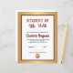 El Premio Personalizado del Certificado de Consecución de Estudiantes del Año es estupendo para dar a sus estudiantes para mostrar su aprecio por el trabajo duro que han hecho. El certificado se puede personalizar con su información sobre el estudiante y por qué se le reconoce. Personalízalo.