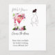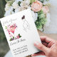 Elegantes flores de jardín con vidrio de champán, bayas y texto "Petals and Prosecco" Floral temática ducha de novia Tarjeta de juego Adivina la vestimenta de la novia en colores de lila, lavanda, rosa rubor, melocotón, albaricoque y vegetación.