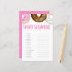 Añade esta divertida tarjeta de juego de la palabra de bebé a tu ducha de bebé. Esta tarjeta de juego para la ducha de bebé cuenta con donuts color agua rosa, blanco y chocolate con rociadores de colores. Personalice agregando nombres, eventos y fecha. Esta acuarela no sirve para el juego de la ducha para bebés. Es un Chica de duchas para bebés.