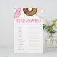 Añade esta divertida tarjeta de juego de la palabra de bebé a tu ducha de bebé. Esta tarjeta de juego para la ducha de bebé cuenta con donuts color agua rosa, blanco y chocolate con rociadores de colores. Personalice agregando nombres, eventos y fecha. Esta acuarela no sirve para el juego de la ducha para bebés. Es un Chica de duchas para bebés.