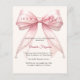 An elegant soft ivory background, decorated with a large pink bow with pearls. Personalize and add a name and party details.