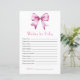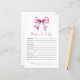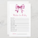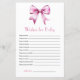 Watercolor Pink Bow Ribbon Baby Shower Wishes para el juego del bebé.