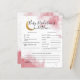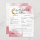 Diversión sobre el tema de la luna chica de bebé ducha predicciones para bebés y tarjeta de consejo con una acuarela de cielo rosa con falsa luna brillante de oro. Los textos son editables. Un juego perfecto para jugar durante la ducha y sin duda será un gran placer. La tarjeta pide a los invitados que predigan cómo sería el bebé.