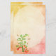 Planta de tomate y abejas sobre papel de fondo amarillo y rojo, papel de papelería,