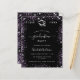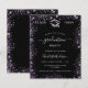 Una moderna y elegante invitación a la fiesta de graduación. Un fondo negro decorado con polvo violeta y falso purpurina. Personalice y agregue un nombre, año y detalles.