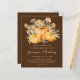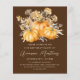 Las elegantes calabazas naranjas acuáticas están enclavadas en una variedad de follajes y flores. Un fondo marrón oscuro y rico lo enmarca a la perfección. Perfecto para una celebración de otoño. Todo el texto es editable.