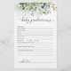 Predicciones de Eucalyptus baby ducha para tarjeta de bebé. Hay juegos de juego disponibles.