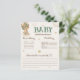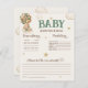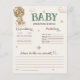 Oso de peluche con globos de marfil beige verde sabio fiesta de Baby Shower predicciones para bebés y tarjeta de consejo con texto de personalizable, con el oso más dulce que se eleva con adorables globos de aire caliente! Esta tarjeta de oso de peluche verde de estilo bohemio es perfecta para los fiestas de ducha de bebé neutros en cuanto a género, para celebrar la llegada del chica o del niño. Imagina un lindo oso de peluche con una reverencia verde en el cuello, sujetando los globos con deleite. No te olvides de explorar la colección completa. 💚