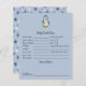 Haz que tu bebé duche, los invitados rellenan estas lindas predicciones de bebé y tarjeta de consejo que incluye un lindo pingüino de ilustracion dibujado a mano sosteniendo una estrella amarilla. Esta adorable tarjeta de consejo con temática de pingüino de invierno es una maravilla y una actividad divertida para su ducha de bebé con temática de pingüino ártico. La parte posterior de esta tarjeta presenta un patrón estelar pintado a mano en azul y blanco texturizado que es divertido y caprichoso.