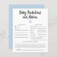 Moderna y atractiva tarjeta de consejo y pronósticos para bebés con el corazón azul. Los textos son editables. Un juego perfecto para jugar durante la ducha y sin duda será un gran placer. La tarjeta pide a los invitados que predigan cómo sería el bebé. Diseñado para la ducha de bebé de un niño.