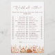Este artículo es una fascinante mezcla de calidez otoñal y elegancia bohemia que promete hacer su celebración inolvidable. La pieza central de esta pieza es una calabaza muy bien hecha, delicadamente pintada en tonos suaves, que simboliza la abundancia y alegría de la temporada de otoño. Alrededor de la calabaza se encuentra una impresionante variedad de flores acuáticas y follaje en ricos tonos de terracota, naranja, que evocan los colores vibrantes del otoño. Este objeto captura con gusto el espíritu de una ducha de novia en otoño, combinando el encanto rústico con la elegancia bohemia para crear un diseño intemporal y encantador. Con su impresionante combinación de acuarela y elementos de moda boho, este artículo promete una celebración tan única y especial como la propia novia. Haga clic en el botón "Personalizar" para obtener más información sobre esta plantilla. Podrá modificar el estilo, los colores y los tamaños. Elementos coincidentes disponibles.