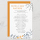 Hoja de juego, con instrucciones de juego editables - test de adivinanzas divertidas para jugar en la ducha de bebé de Halloween o en la ducha de novia. Este diseño temático de otoño ha barrido el follaje otoñal y la telaraña en una paleta de colores de azul naranja, gris y tormenta. Se pueden encontrar elementos de coordinación en mi tienda, en la colección Little Boo Halloween.