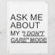 Adelante y pregúntame acerca de mi modo "No me importa". Texto gracioso.