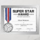 Esto es para los que se dan todo dejando nada. Nuestro Certificado de Voleibol Super Star Volleyball Award se hizo teniendo en cuenta estos sentimientos. Celebra las superestrellas del voleibol en tu equipo con nuestro Certificado de Voleibol Super Star. Ideal para colegios, ligas juveniles, ligas pequeñas o cualquier otro equipo de pis. Nuestro Certificado de Voleibol Super Star es fácil de personalizar. Prepárate para honrar a las superestrellas del voleibol en tu vida. Certificados de fútbol plantillas de certificado de fútbol. Certificado de entrenador de fútbol. ceremonia de entrega de premios deportivos. Certificado de administración atlética. Certificados deportivos. Plantillas de certificado deportivo. Plantillas de certificado atlético. Premio superestrella. Certificado de estudiante superestrella.