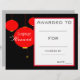 Un premio de certificado académico de clase escolar con un tema de farolillos rojos chinos en perfecto para un joven estudiante de idioma mandarín motivador. Puedes escribir en tus propios detalles. Un gran recurso para cualquier tipo de profesor de aula. Tema negro y rojo