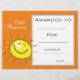 Un elegante y moderno galardón de clase con una linda imagen de sol perfecta para un joven estudiante motivador. Puedes escribir en tus propios detalles. Un gran recurso para cualquier tipo de profesor de aula.
