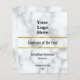 Este premio tiene un diseño falso de mármol blanco y una plantilla de texto en pantalla gris. Hay líneas para el nombre del premio (Mostrar: Empleado del Año), el nombre del destinatario, el título del empleado, el nombre de la empresa y el año en que se presenta el premio. Todo el texto se puede editar o eliminar. En la parte superior, también hay una imagen de pantalla que se puede reemplazar con el logotipo de su empresa. Los detalles dorados son una representación artística (no Relieve metalizado).