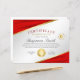 Brillante Premio de Certificado Profesional de Oro y Rojo. Incluye Dos Medallas De Oro.
