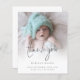 Hay dos opciones de papel entre las que elegir para este tamaño (4,5 x 5,6") en el rango de presupuesto. Para este producto, recomendaría en gran medida el semi brillo que es una tarjeta de 110 gsm, similar en grosor a una postal. La opción Satin es un papel mucho más delgado 80gsm. El valor predeterminado se establece en semi brillo. POR FAVOR, TENGA EN CUENTA QUE HAY UNA por hoja. Resumen de fotos del presupuesto Gracias Anuncio de Nacimiento. Combina tu anuncio de nacimiento y gracias por regalos y tarjetas para que puedas enviar un solo diseño. Una tipografía de conjunto informal en negro para el título principal Gracias complementando el resto del texto que puede personalizar fácilmente. Reemplace la foto de ejemplo con su recién nacido favorito.