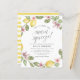 ¡Ha encontrado su chirrido principal! Una moderna invitación a la ducha nupcial con temática cítrica con "exprimida principal" en caligrafía de pincel enmarcada por una corona de color de fruta y flores. En el reverso se ven rayas acuáticas pintadas a mano en amarillo. Como parte de la selección de presupuesto de Zazzle, estas invitaciones no vienen con sobres ni encajan en un sobre de tamaño estándar. La talla más cercana es la A6, pero hay una distancia de aproximadamente media pulgada. Si no te importa la falta de confort, puedes usar sobres A6 tan ampliamente disponibles. De lo contrario, este diseño se puede transferir a un formato estándar de 5x7 (que incluye sobres) utilizando la herramienta de transferencia de diseño. Como guía aproximada, al momento de escribir este artículo, 100 invitaciones presupuestarias (incluyendo un descuento por volumen) costarían alrededor de $39, mientras que 100 invitaciones estándar las 5 horas del día, los 7 días de la semana, incluyendo sobres, costarían aproximadamente $135. Su kilometraje puede variar dependiendo de los códigos de promoción disponibles de Zazzle, las ventas en todo el sitio o los cambios en los precios.