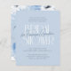 Una polvorienta invitación al presupuesto de la ducha de novia azul con tipografía audaz y letras manuscritas. La parte delantera de la tarjeta tiene un fondo azul claro, con una "ducha de novia" escrita en una tipografía de inspiración blanca deco. El nombre de la futura novia está escrito en moda con caligrafía moderna. Arriba y abajo, los detalles del evento aparecen en la elegante tipografía formal del serif. Las cartas se revertirán a un patrón floral de acuarela. Como parte de la selección presupuestaria de Zazzle, esta hoja no es un tamaño de invitación estándar ni una calidad de papel. Si desea este diseño en una tarjeta de invitación, puede encontrarlo en la colección o utilizar la máquina Zazzle Make para transferirlo al producto de su elección. Ver la colección enlazada en esta página para ver artículos coincidentes o visitar nuestra tienda para más diseños de invitación a la ducha de novia!