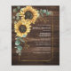 Crea una moderna tarjeta de invitación a la ducha con flores de girasol floral con esta bonita plantilla con un bonito fondo rústico de madera impresa, un ramo de flores con una moderna y sencilla tipografía. CONSEJO: En la colección que aparece a continuación se pueden encontrar tarjetas de suite boda como RSVP, programas de boda, carteles, tapiz, etiquetas de regalo, carteles y otros agujeros y artículos de boda.