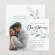1.ᵉʳ Navidades casados Foto Foliage Holiday card. Una tarjeta plana SMALLER de 4,5" x 5,6" para sus saludos festivos en una brillante tarjeta SEMI GLOSS de 110 lb (similar al espesor de una postal) POR FAVOR NOTE: el sobre suministrado con esta tarjeta es ligeramente más grande que la propia tarjeta. ¡Celebremos la hora especial de su primera Navidad como Sr. y Sra. junto con sus deseos festivos! Fácil de personalizar el texto y reemplazar la foto de ejemplo por la suya propia. El follaje de estilo invernal está a cada lado.
