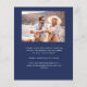 Esta sencilla y minimalista tarjeta Save the Date incluye un arco fotográfico sobre las palabras "Save the Date" en un elegante guión de escritura a mano en blanco, seguido por los nombres de la pareja, la fecha del boda y la ciudad en letra sans serif sobre un fondo azul marino. Añadir una foto horizontal y un mensaje más detallado con información adicional en la parte posterior.