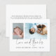 NOTA: Hay dos opciones de papel entre las que elegir para este tamaño (4,5 x 5,6") en el rango de presupuesto. Para este producto, recomendaría el semi-brillo que es una tarjeta de 110 gsm, similar en grosor a una postal. La opción Satin es un papel mucho más delgado 80gsm. El valor predeterminado se establece en semi brillo. POR FAVOR, TENGA EN CUENTA QUE HAY UNA por hoja. *** Presupuesto Minimalista 2 Fotos Amor y Gracias Anuncio de Nacimiento Script. Comprendiendo su agradecimiento y anuncio de nacimiento todo en uno. Simplemente reemplace las dos fotos de muestra con las suyas propias y personalícelas con el nombre y la fecha de nacimiento y el peso en la parte inferior del mensaje de agradecimiento en la parte posterior. Love and Gracias está en un elegante guión.