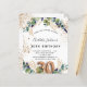 Por un fiesta de 30 años. Un fondo blanco decorado con vegetación eucaliptos y hojas doradas. Lugares purpurinas de imitación dorada. Personalice y agregue sus nombres y detalles del boda. Letras de color negro y dorado. El número 30 se escribe con el tipo de letra de estilo globo. Parte posterior: fondo blanco y puntos purpurinas falsos dorados.