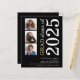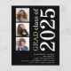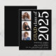 Una alternativa de valor por dinero BUDGET en un tamaño menor de 4,5 x 5,6" de peso semibrillante de 110 libras, que es de espesor similar al de una postal (sin embargo, no es adecuado para usar como postal). POR FAVOR, TENGA EN CUENTA QUE HAY UNA invitación por hoja. Presupuesto 3 foto Negrita Invitación de Graduación Negra 2025. Una tipografía moderna y elegante y un diseño fotográfico múltiple, con texto grande girado y a la derecha en negro y oro. Personalice fácilmente el resto del texto y reemplace las fotos de las plantillas con su propia orientación cuadrada.