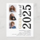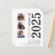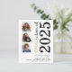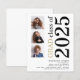 Una alternativa de valor por dinero BUDGET en un tamaño menor de 4,5 x 5,6" de peso semibrillante de 110 libras, que es de espesor similar al de una postal (sin embargo, no es adecuado para usar como postal). POR FAVOR, TENGA EN CUENTA QUE HAY UNA invitación por hoja. Presupuesto 3 foto Negrita Invitación a la Graduación Blanca 2025. Una tipografía moderna y elegante y un diseño fotográfico múltiple, con texto grande girado y a la derecha en blanco y oro. Personalice fácilmente el resto del texto y reemplace las fotos de las plantillas con su propia orientación cuadrada.