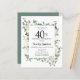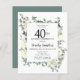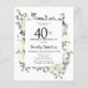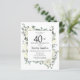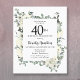 La elegante invitación a la fiesta de cumpleaños número 40 incluye un marco botánico de flores blancas y hojas verdes profundas. El nombre de la persona de cumpleaños está escrito en un texto de escritura tradicional. Todo el texto se puede editar fácilmente para crear el tono de celebración correcto.