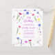 Las flores silvestres de primavera coloridas rodean los detalles de tu fiesta de cumpleaños. Moderna, moderna y femenina.