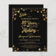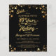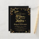 Invite a sus invitados a una Fiesta Sorpresa de Cumpleaños 80 AÑOS EN CREACIÓN con esta invitación económica impresa en papel ligero de 4.5x5.6" en lugar de cartulina con un diseño de tipografía de caligrafía retro que incorpora su edad y año de nacimiento dentro del diseño en texto dorado con estrellas doradas sobre un fondo de color editable (mostrado en negro). Este tipo de tarjeta es ideal para entregar a mano y/o para presupuestos conservadores (los sobres se venden por separado en la página de pedido). ASISTENCIA: Para ayuda con la modificación del diseño o personalización, cambio de color, conversión a un archivo de descarga digital instantánea, transferencia del diseño a otro producto o si desea artículos coordinados, contacte al diseñador ANTES DE PEDIR a través de la pestaña de MENSAJE de Zazzle Chat o envíe un correo electrónico a makeitaboutyoustore