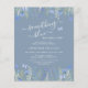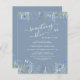 ¿Estás planeando una ducha especial de novia? Esta encantadora invitación a una ducha de novia con presupuesto azul está decorada con flores de color acuático y mariposas. Dice "Algo azul antes que yo" en tipografía elegante. Personalizable fácil. Acuarela original © Michele Davies.