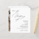 La invitación a la boda presenta un diseño minimalista y elegante con un fondo blanco limpio y una combinación de escritura moderna y fuentes serif. La parte delantera incluye una solicitud para unirse a la celebración, con "El Boda de" en un prominente estilo cursivo, seguido por los nombres de la pareja en negrita letra serif y detalles del evento en un formato claro y directo. La parte posterior muestra una foto de arco de la pareja que puede ser personalizar, con texto para los detalles de RSVP en el script coincidente y un código qr.