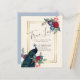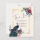 Hermoso pavo real con flores azul teal y borgoña, las hojas de verde salvia se destacan en estos artículos de boda de otoño e invierno. Parte de una colección más grande que incluye invitaciones de boda económicas, anuncios de ahorro de fechas, RSVPs, tarjetas de agradecimiento, regalos para la novia y el séquito de bodas, y más. Para una guía detallada GRATUITA de planificación de boda de invierno, visite weddingdesignchic.com.