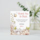 Un precio económico menor 4,5" x 5,6" alternativa. Disponible en un ALMACENAMIENTO DE TARJETAS SEMI-GLOSS de 110 lb que es la opción predeterminada (más grueso para las invitaciones), O UN ALMACENAMIENTO DE PAPELES DELGADOS SATIN FINISH DE 80 lb (ideal para los gabinetes). Los sobres son un extra opcional y son algo más grandes que el tamaño de la tarjeta. ... Un diseño divertido con encanto natural para su agradecimiento es con una hermosa abeja de burbujas en la parte superior y grandes flores de color rubio y blanco que bordean el lado izquierdo y los bordes inferiores. El encabezado principal Baby Shower está en un estilo artístico fijo en coral y el resto del texto que puede personalizar fácilmente a sus propios detalles. También puede cambiar los colores del texto si lo desea a través de la opción Click to Personalizar Further (Hacer clic en más ), así como los colores de fondo de ambos lados a través de la opción personalizar adicional.